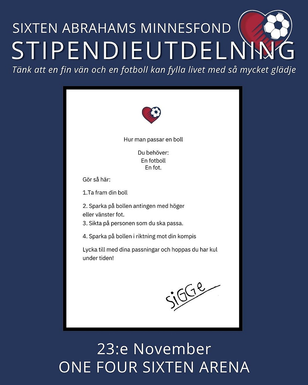 Programmet presenteras när allt är spikat men det blir ’innan solen går ner’. I år är det spelare som är födda 2012 i både FC Trelleborg samt Gislövs IF som kommer få stipendier. Givetvis välkomnar vi även Hjärtebarnsfonden.